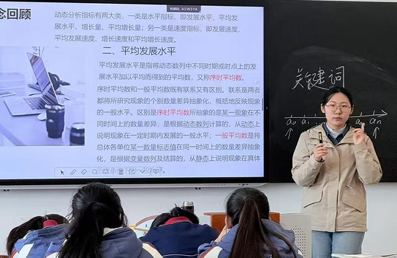 “我站上了统计课、会计课的讲台。讲‘平均发展水平’时,我学着指导老师的样子,把抽象的概念拆成生活里的例子;讲‘资产=负债+所有者权益’的会计等式时,在黑板上一笔一划写例题,生怕漏掉一个细节。”