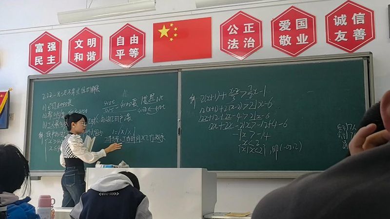 “实习中的感动,藏在课堂的小细节里。有一次讲不等式组的解集,我在黑板上写解题步骤时,一个女生悄悄递来一张纸巾:‘老师,您手蹭到粉笔灰啦!’还有学生在下课后围过来,举着笔记本问“这个会计分录我写对了吗?’眼睛里的认真让我忽然明白:我们传递的不仅是知识,更是认真对待一件事的态度。”